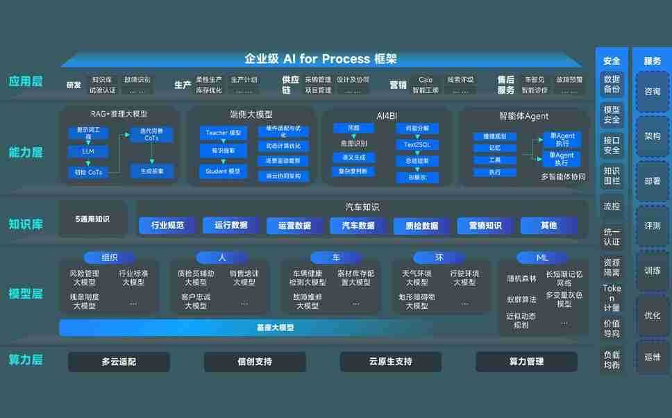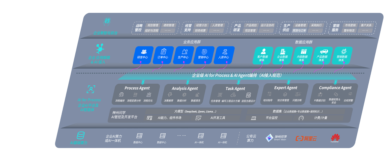 端到端的一站式AI工作空间深度融合了从企业战略规划到日常经营的全流程业务板块,,,,定向解决车企内部领域多、、、、部门多、、链条长、、、、场景碎片化等难题,,,,支持车企快速构建以AI为核心的生产力写作体系,,,,实现任务执行与AI能力的无缝集成与交互